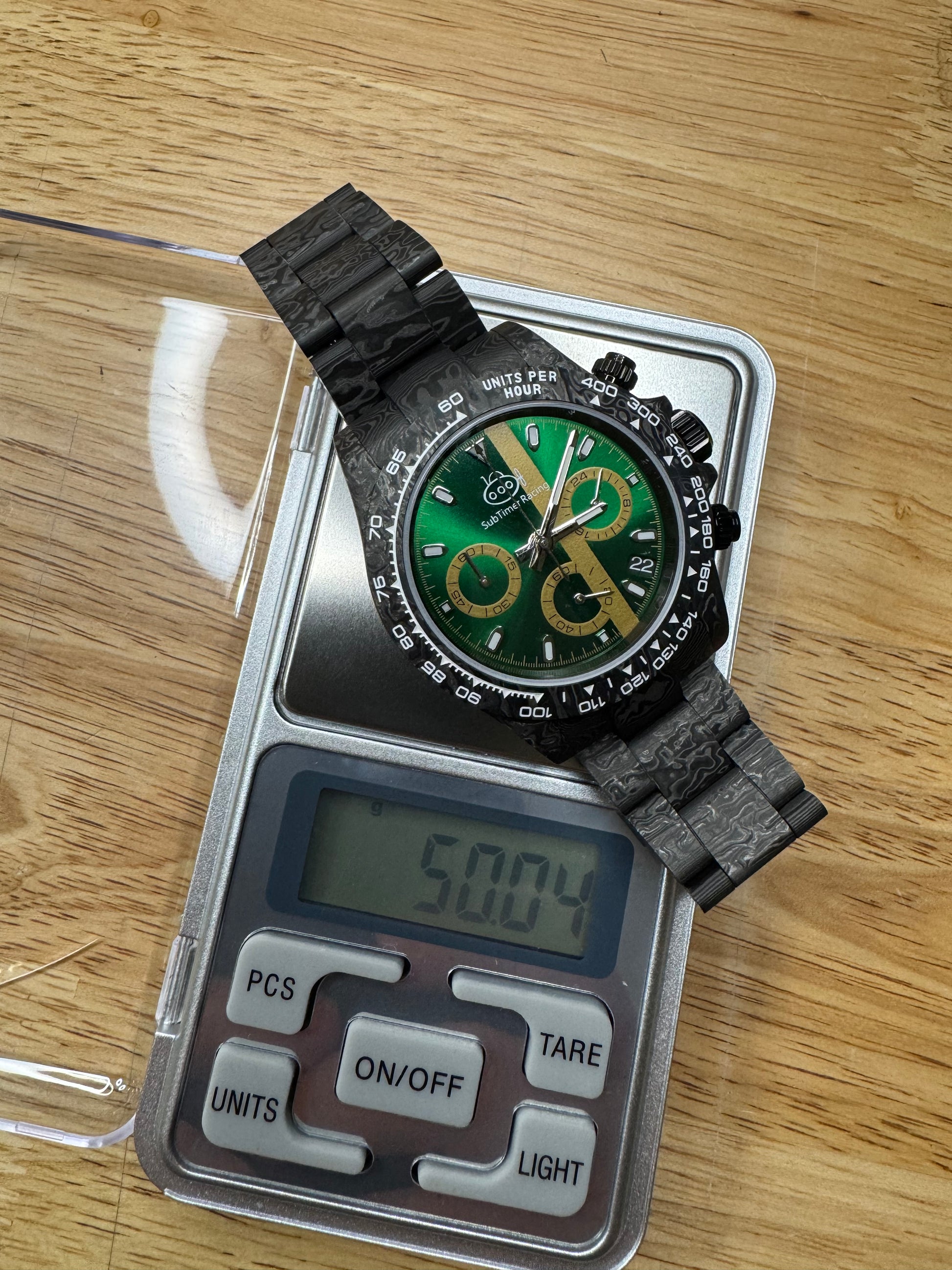 Forged from pure performance DNA, The SubTimer Racing Carbon is a bold collaboration between precision watchmaking and the competitive spirit of Edmonson Motorsports. Crafted entirely from forged carbon fiber, the case delivers exceptional strength while remaining ultra-light—an unmistakable nod to the world of high-performance racing.